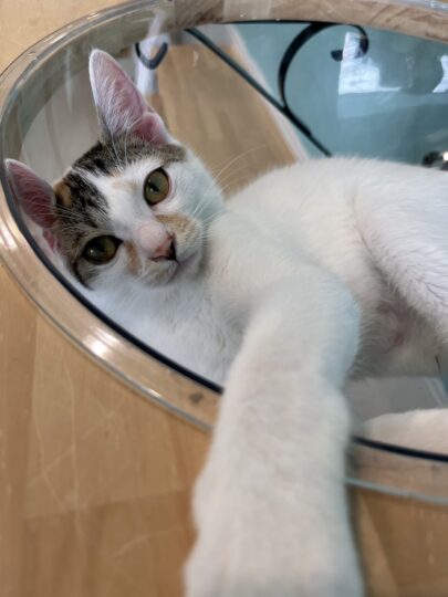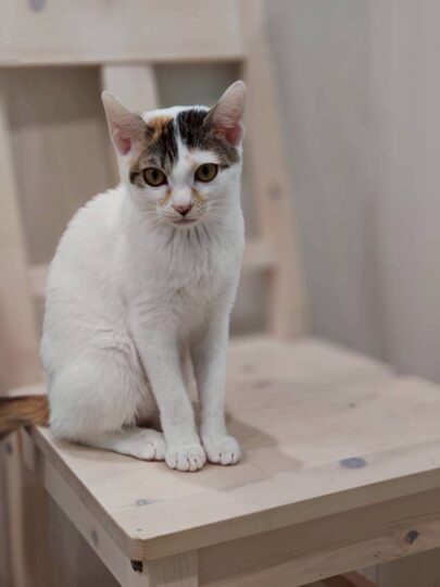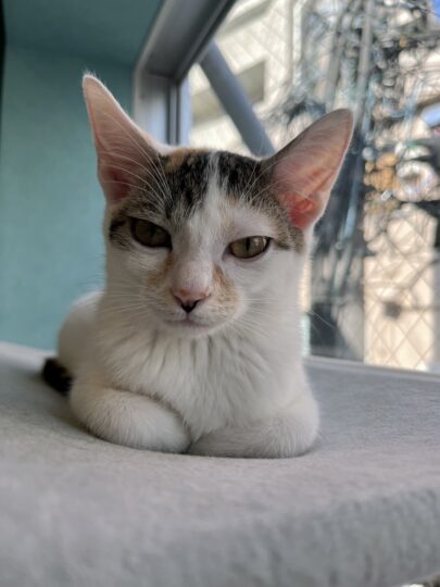 保護猫カフェくくるの森にも、そんなとび三毛猫がいます。